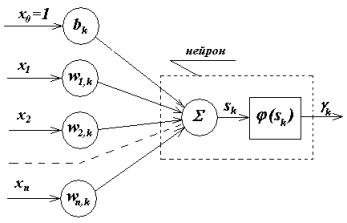 где, для k-го нейрона,