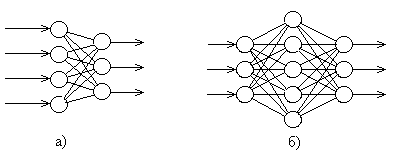 а) однослойная ИНС; б) многослойная ИНС