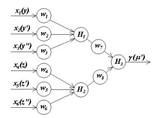 простейшая искусственная сеть с одним выходом и с одним внутренним скрытым