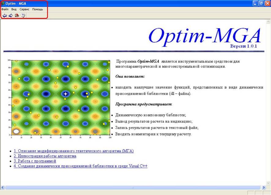 Программа Optim-MGA работает с функциями, представленными в виде динамически присоединяемых библиотек (dll-файлов).